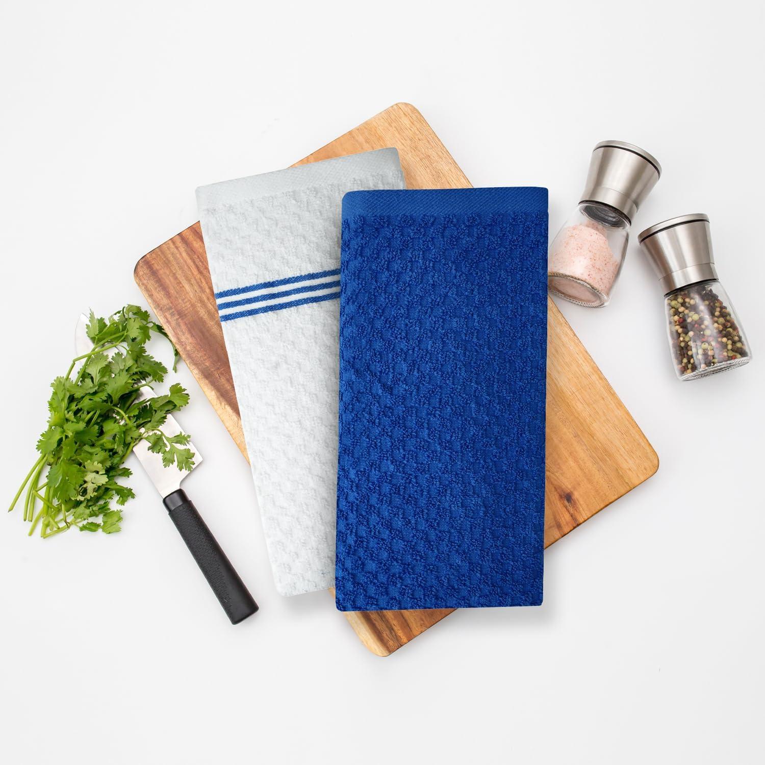 VALUE PACK: six-pack kitchen towels and dishcloths set. These 100% terry ring-spun cotton kitchen dish towels are an excellent value for all your bar, kitchen, and household cleaning needs without sacrificing quality and durability