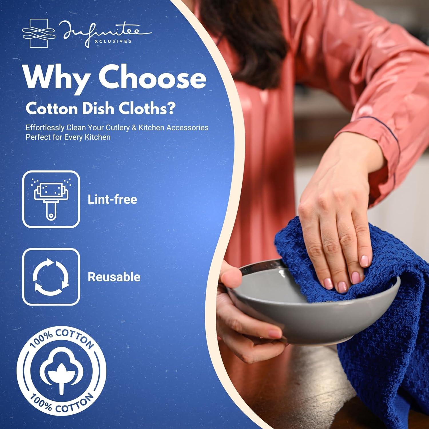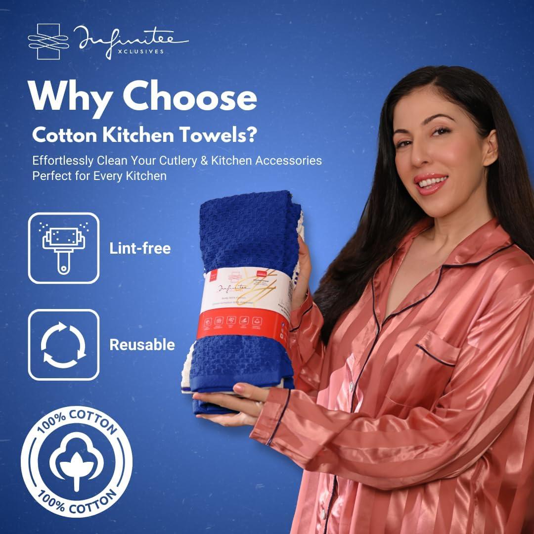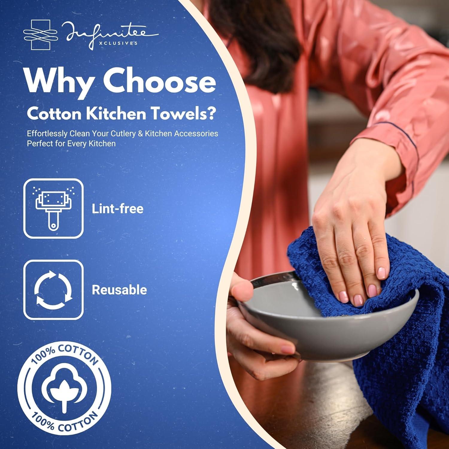 Infinitee Xclusives 100% Cotton Kitchen Towels – 15×25 Inch Ultra Soft Tea Towel, Super Absorbent Terry Dish Towels for Kitchen Linens |Blue|(Mighty Blue)