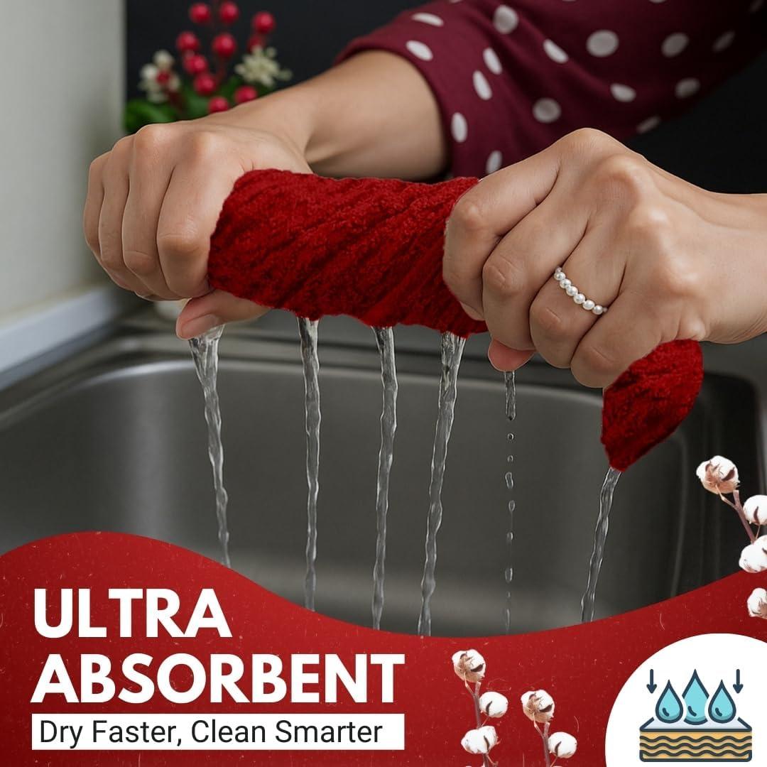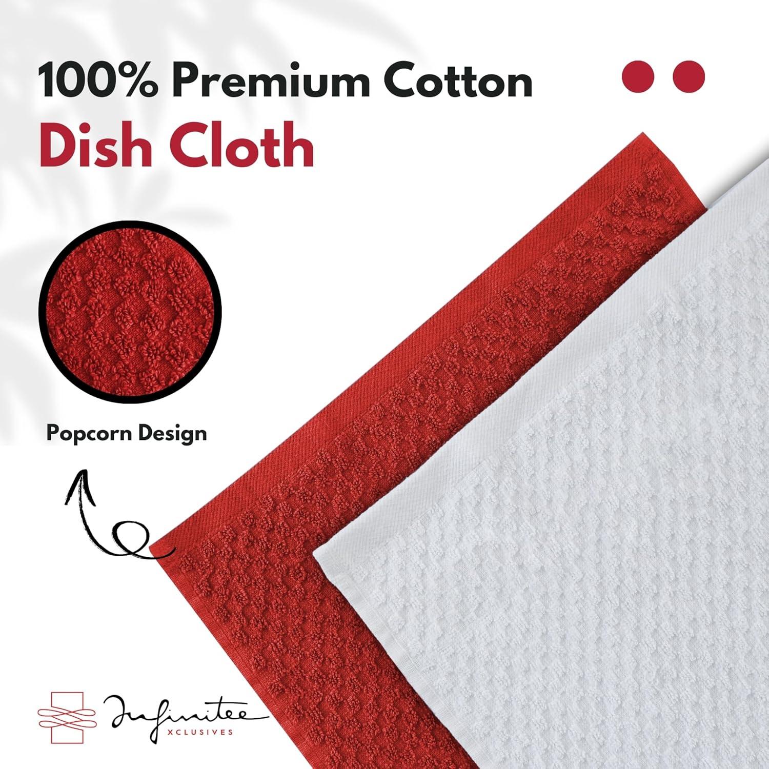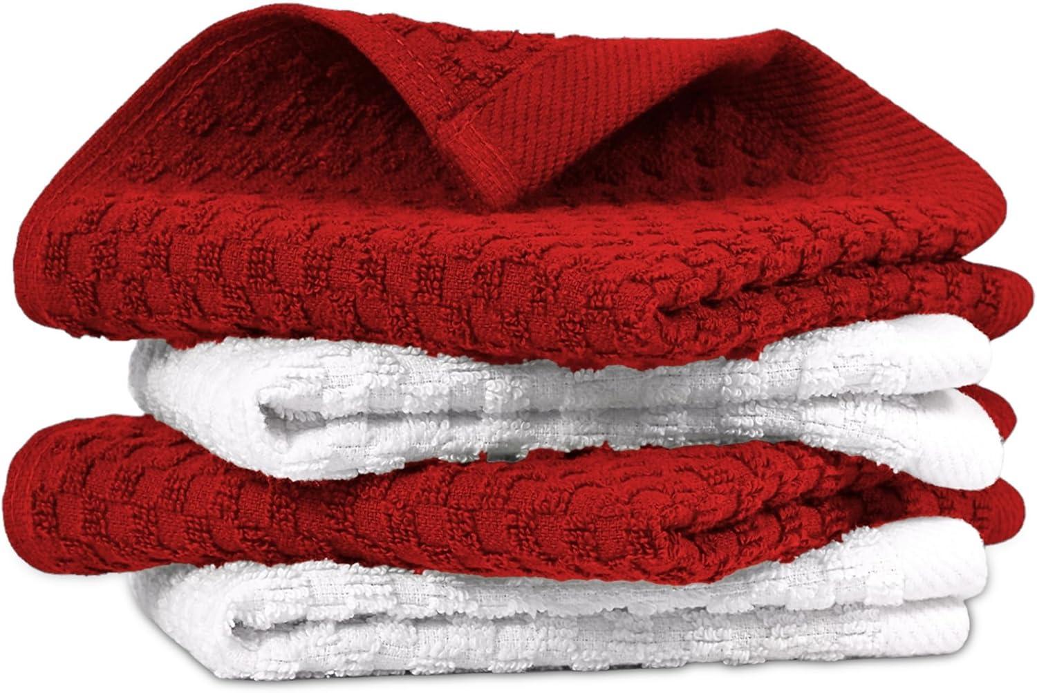 VALUE PACK: six-pack kitchen towels and dishcloths set. These 100% terry ring-spun cotton kitchen dish towels are an excellent value for all your bar, kitchen, and household cleaning needs without sacrificing quality and durability