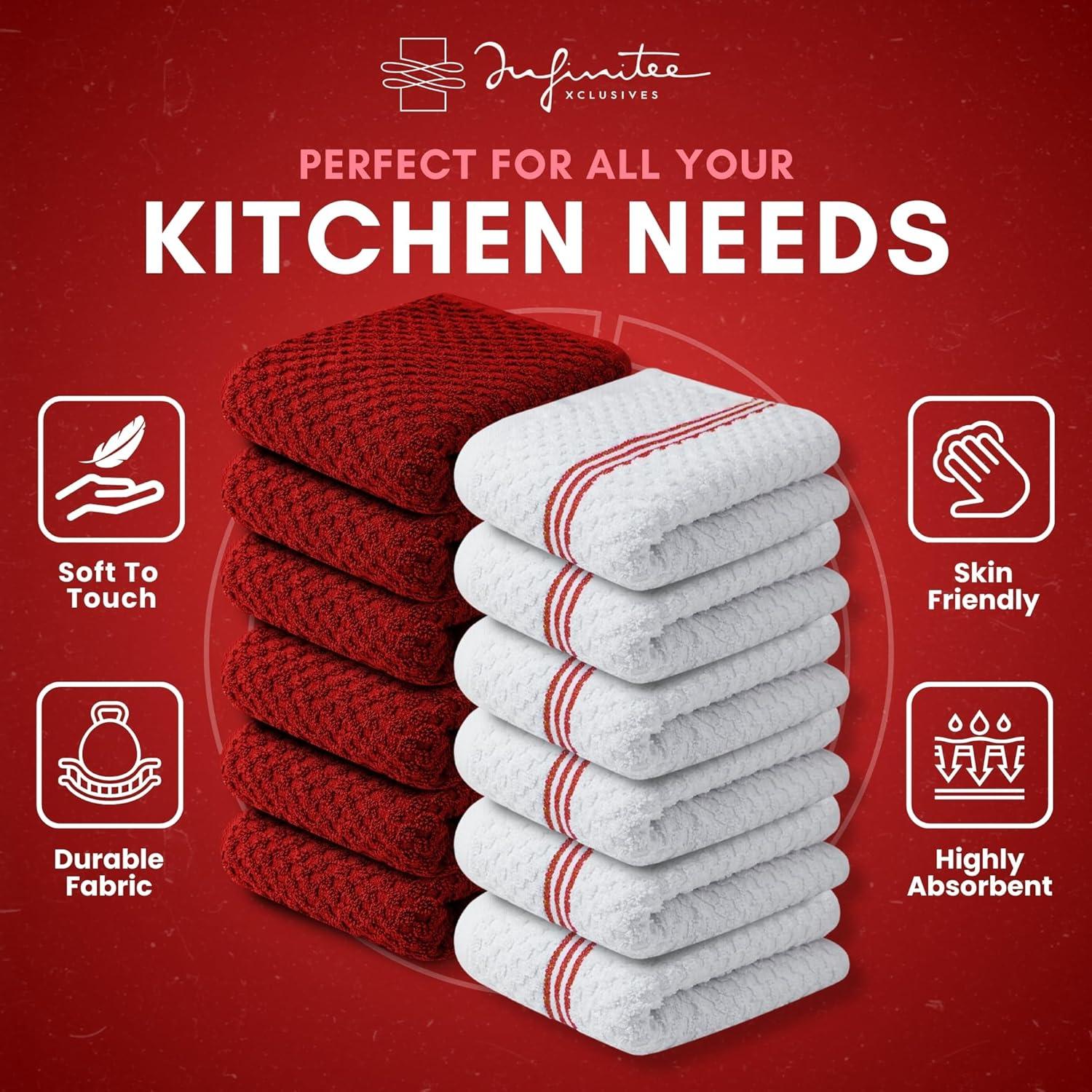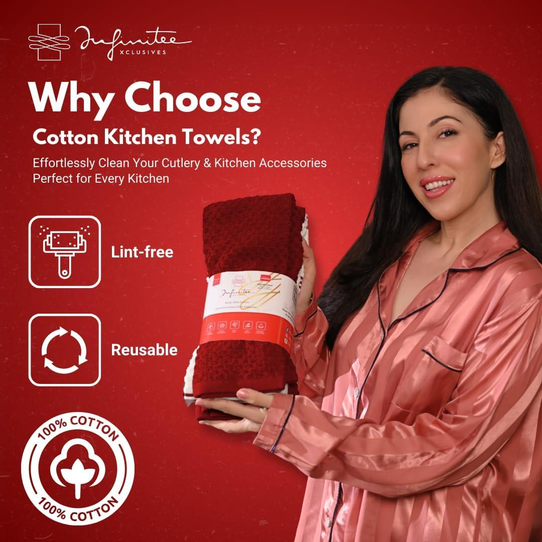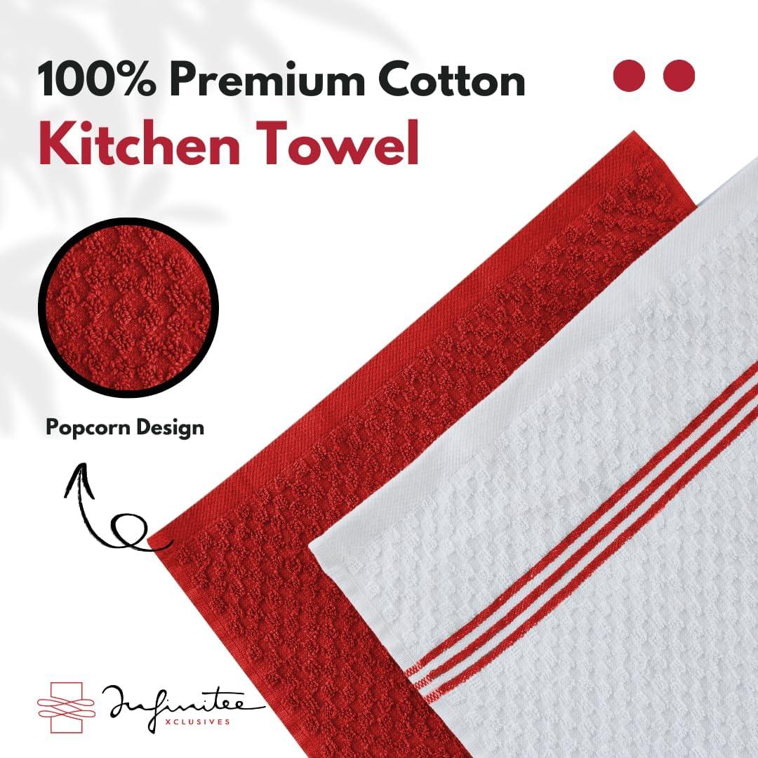 Infinitee Xclusives 100% Cotton Kitchen Towels – 15×25 Inch Ultra Soft Tea Towel, Super Absorbent Terry Dish Towels for Kitchen Linens |Blue|(Passionate Red)