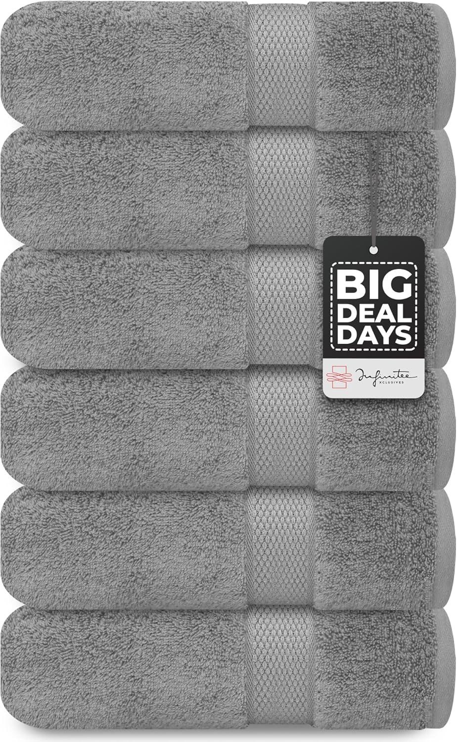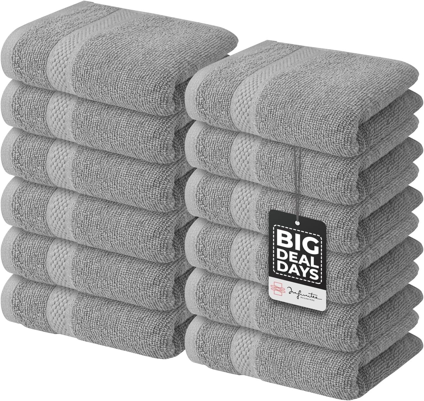 Infinitee Xclusives Grey Towel Bundle – 12 Washcloths & 6 Hand Towels | Soft & Absorbent Cotton Set