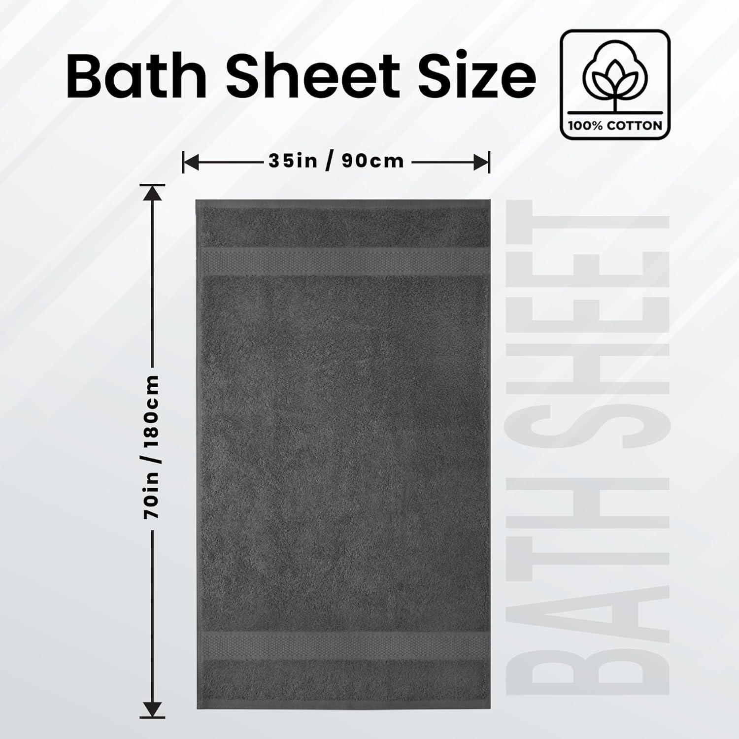 Infinitee Xclusives โ€“ Luxury Bath Sheets Towels โ€“ 1 Pack 600 GSM (35X70 Inches) โ€“ 100% Ring Spun Cotton Large Bath Towels for Bathroom (Brilliant White, Bath Sheets – Pack 1)(Shadow Grey)