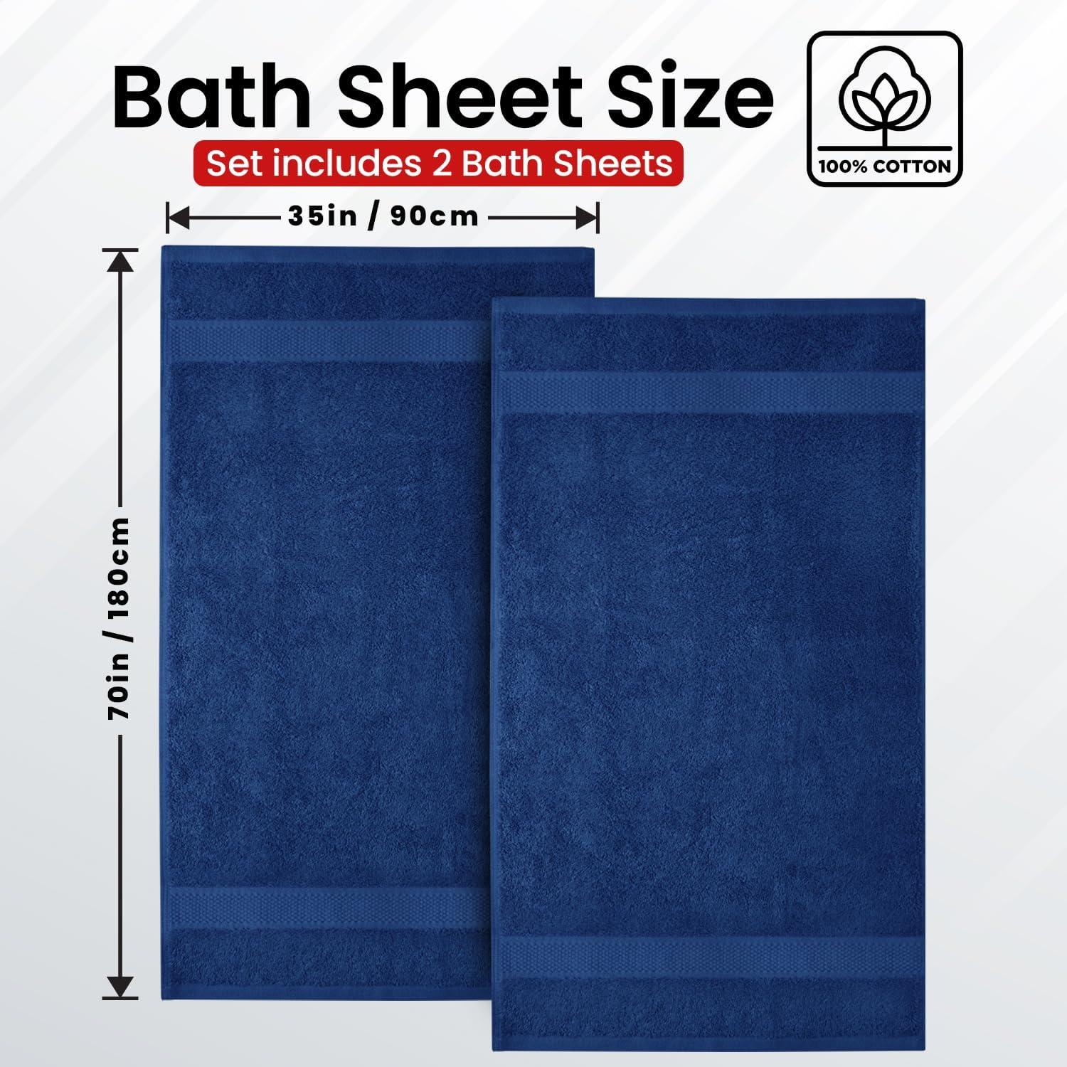 Infinitee Xclusives– Luxury Bath Sheets Towels – 2 Pack 600 GSM (35X70 Inches)– 100% Ring Spun Cotton Large Bath Towels for Bathroom (Brilliant White, Bath Sheet Pack of 2)(Tranquil Navy)