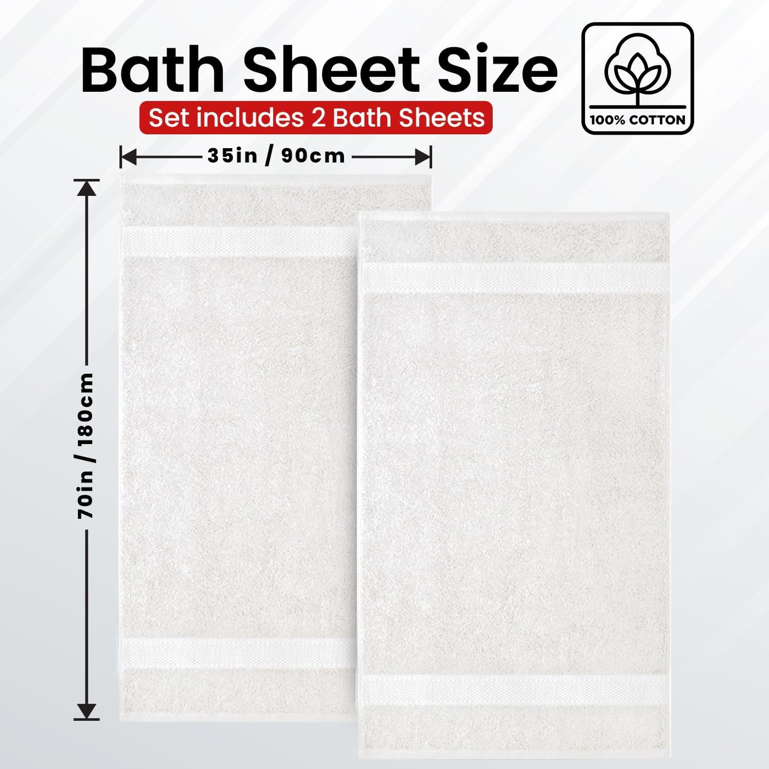 EXTRA-LARGE SIZE: These 2 luxury cotton bath sheets measure 35 x 70 inches, providing generous coverage and comfort. Ideal for any body size, they are perfect for wrapping yourself up after a relaxing bath or shower.