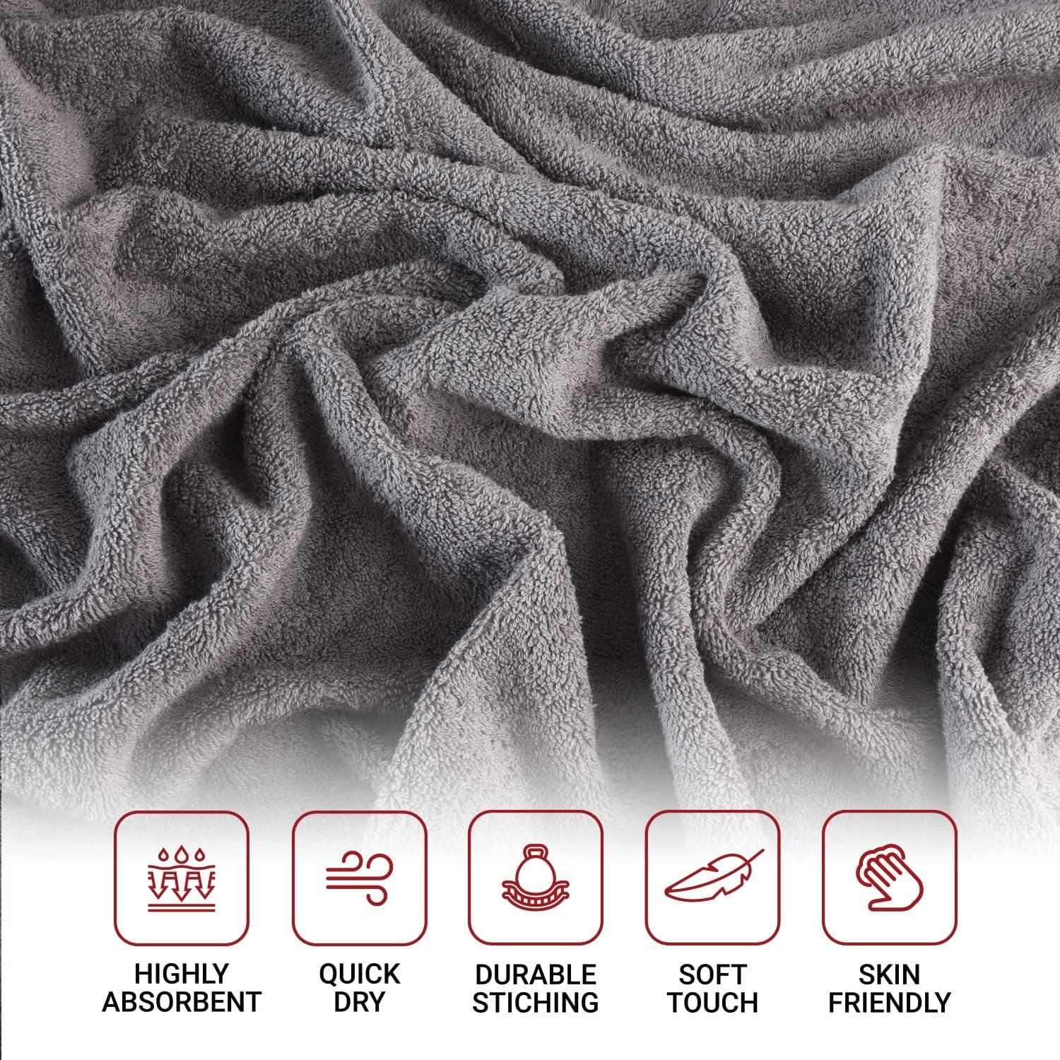Infinitee Xclusives Pack of 4 Grey Bath Towels + Pack of 6 Kitchen Towels – 100% Cotton Terry Towels for Luxury Hotel & Spa Quality