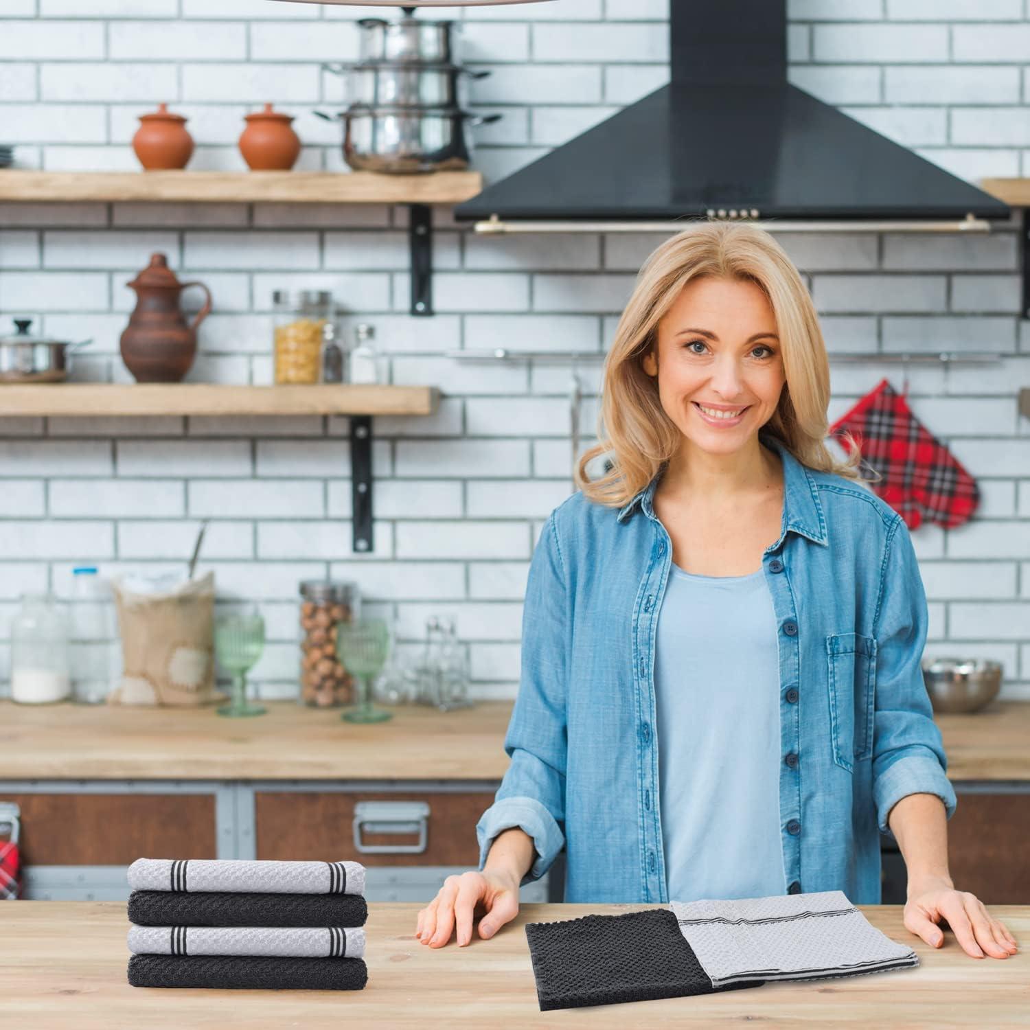 Set of six kitchen towels, 100% terry ring-spun cotton kitchen dishcloths are an excellent value for all your bar, kitchen and household cleaning needs without sacrificing quality and durability