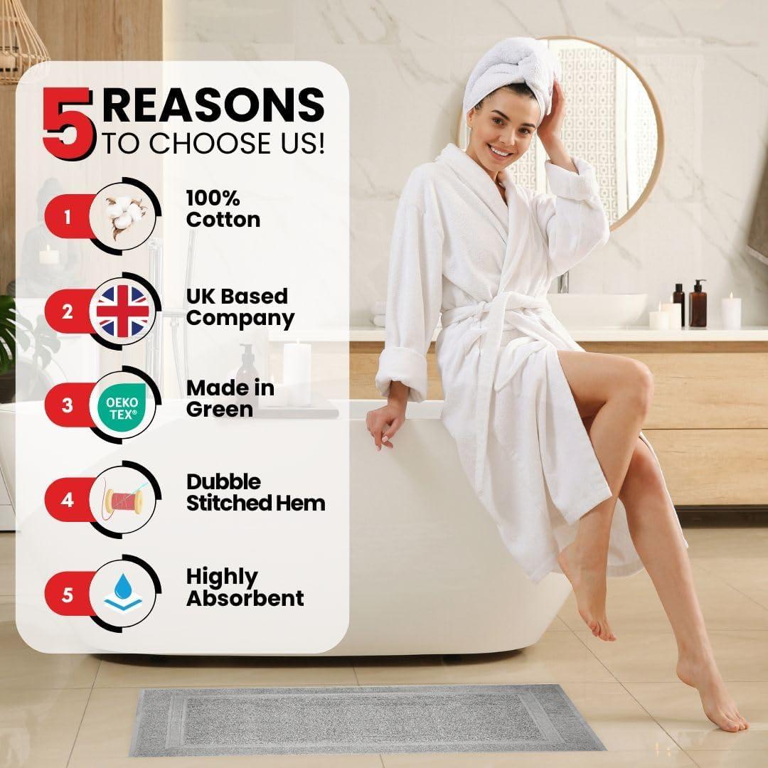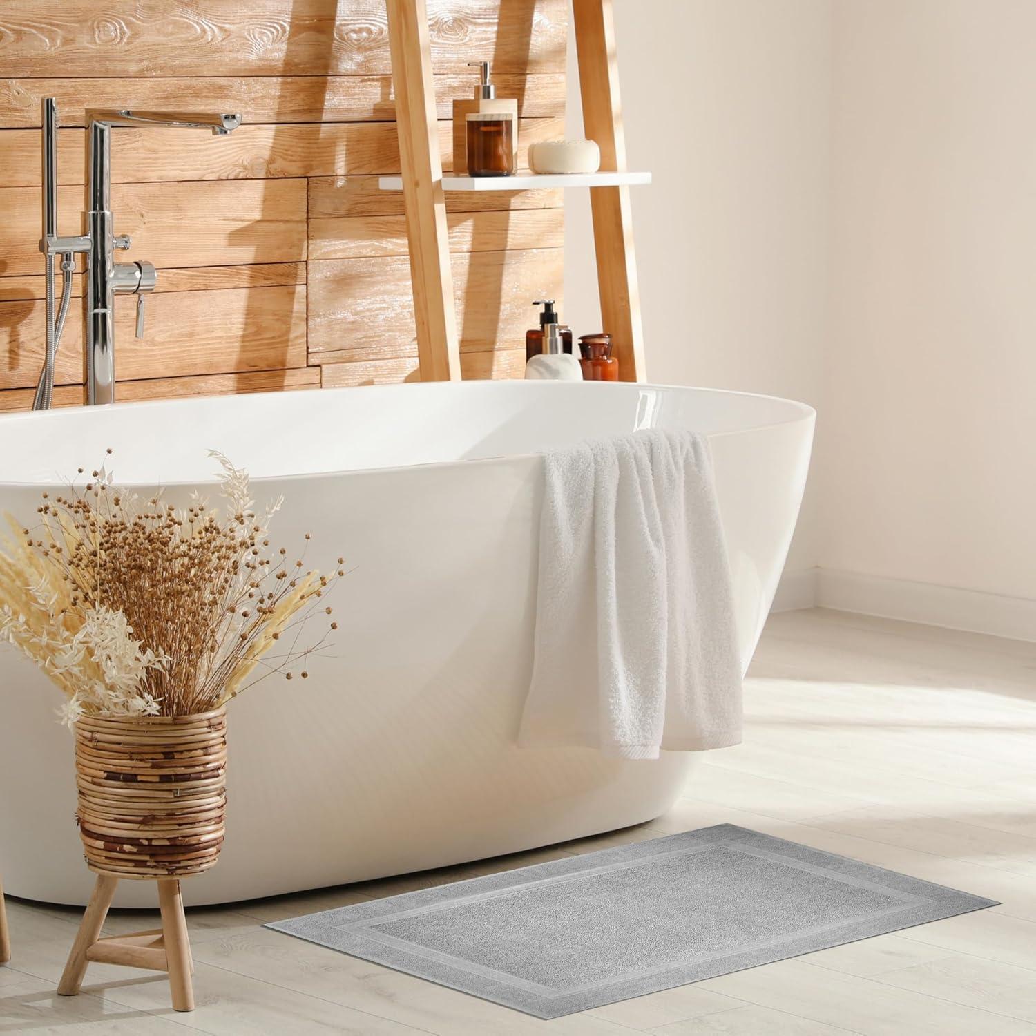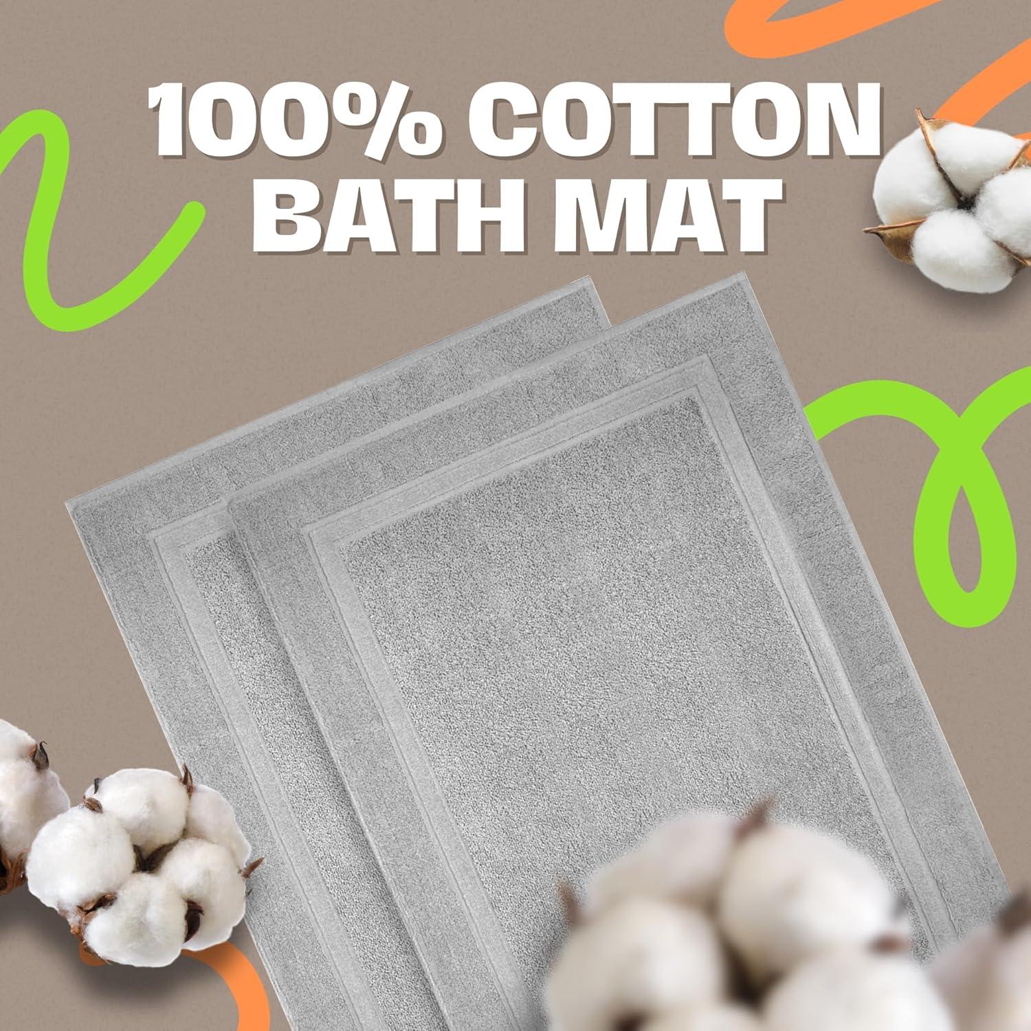 Infinitee Xclusives Premium Cotton Bath Mats for Bathroom – Pack of 2 | 34×22 Inches | Ultra Soft, Super Absorbent, Non-Slip, Machine Washable Mats (White) [Not a Rug](Charming Grey)